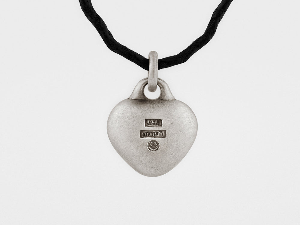 The pendant is finished by hand in oxidized sterling silver for a vintage, artisanal look. Pendant comes on an adjustable waxed cotton cord and has a nicely weighted luxurious feel.